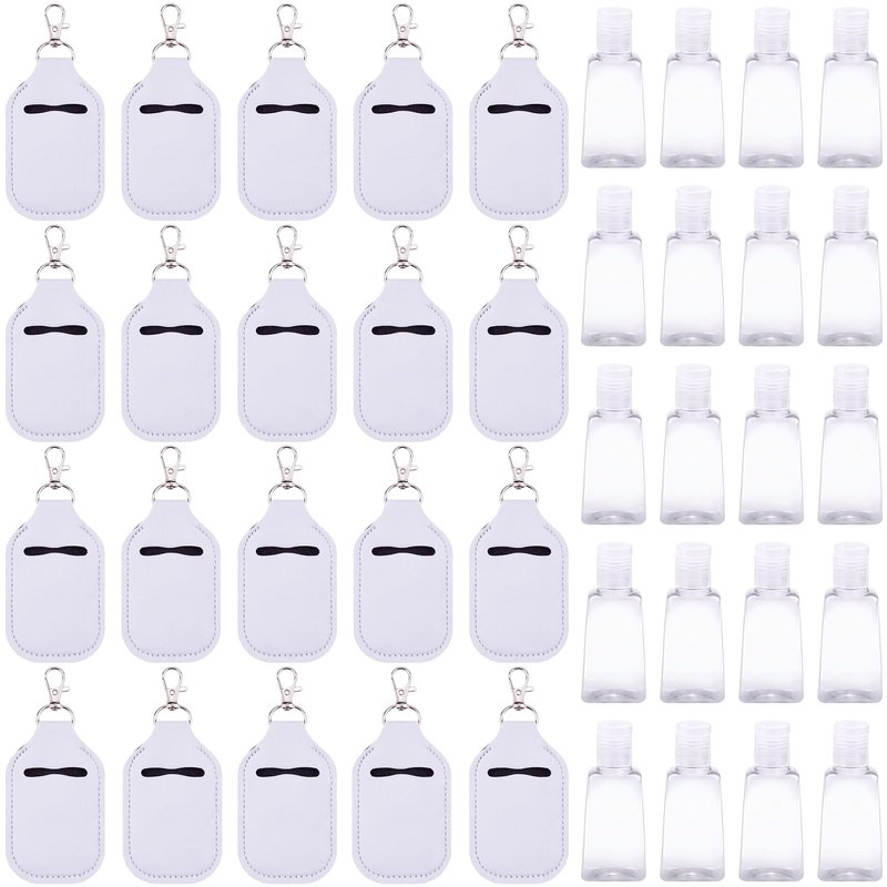 - Package include: Duufin travel bottle keychain holders bulk come with 20 pieces white hand sanitizer keychain holders and 20 pieces refillable flip cap empty travel bottles