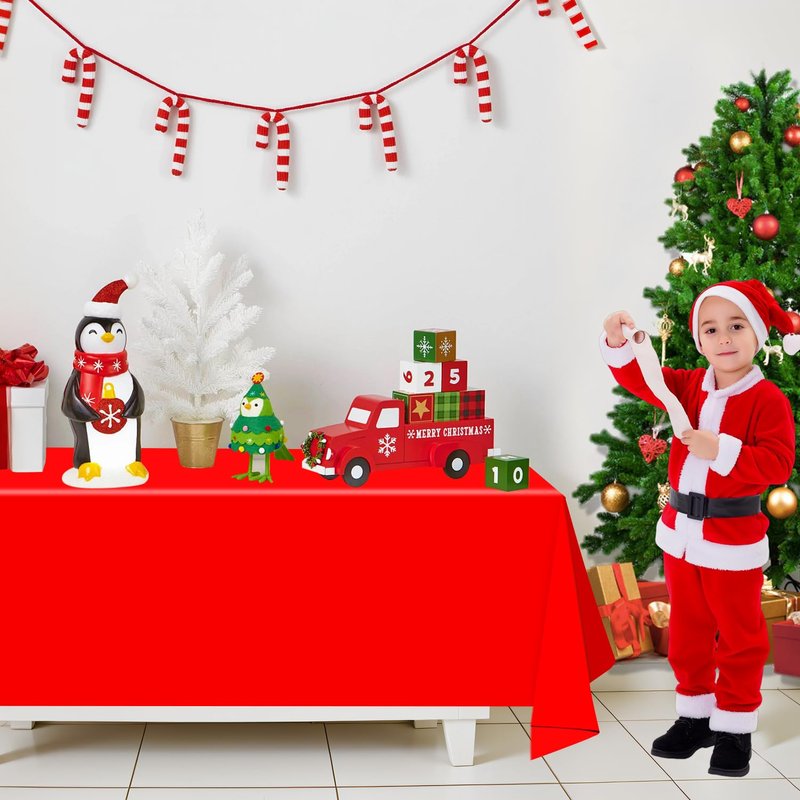- 🎅Easy to Clean: Suitable for indoor and outdoor parties, these Xmas party tablecloths will save your cleaning time after use. These tablecloths are spill-proof and stain resistant, great at picking up any messy spills from food, drinks, paint from arts and crafts sessions and more!