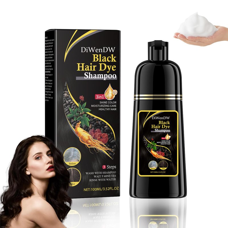 DWDiWen Black Hair Dye Shampoo 3 in 1 for Women & Men,Gray Hair Highly Coverage Deep Cleaning Hair Color Shampoo,Oil Control Long Lasting Moisturizing Hair Dye Shampoo