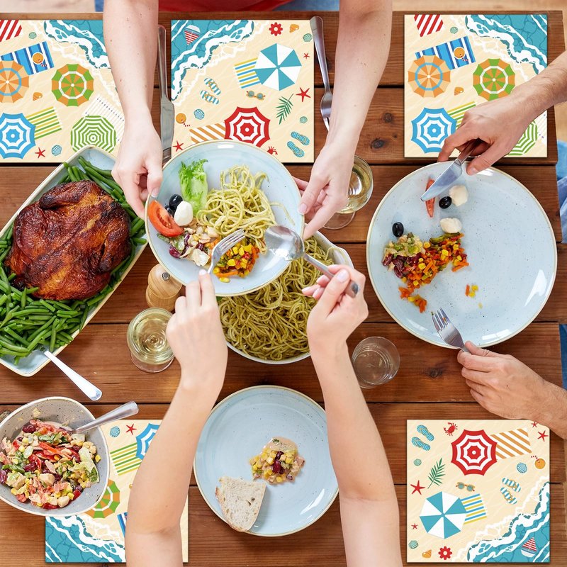 DYLIVeS Summer Beach Party Napkins, Hawaiian Beach Umbrella Paper Napkins Summer Pool Party Napkins for Luncheon Cocktail Summer Birthday Party Decorations Luau Tropical Party Supplies, 50 Pack, 3-Ply