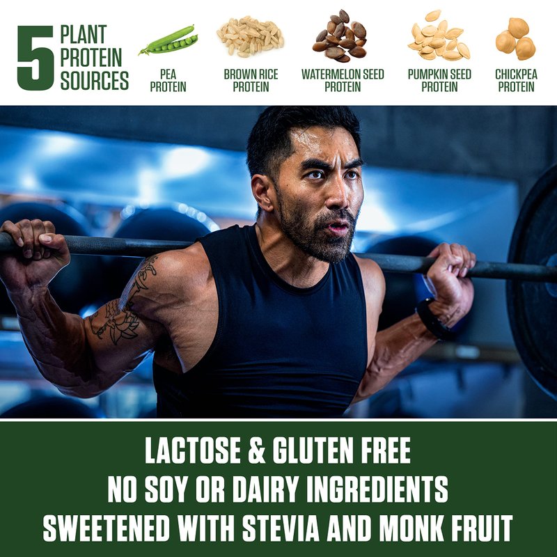 - 25g Plant-based Protein made from 5 plant protein sources (Pea, Brown Rice, Watermelon Seed, Pumpkin Seed, Chickpea)