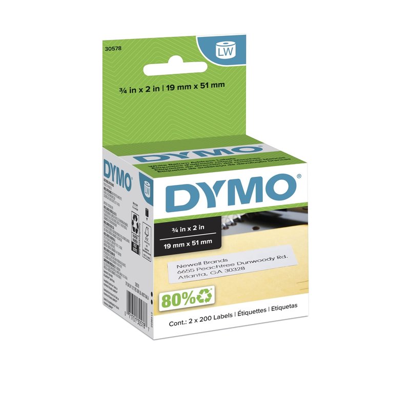DYMO LW Return Address Labels, 3/4" x 2", White, Self-Adhesive, 2 Rolls of 500 (30578)