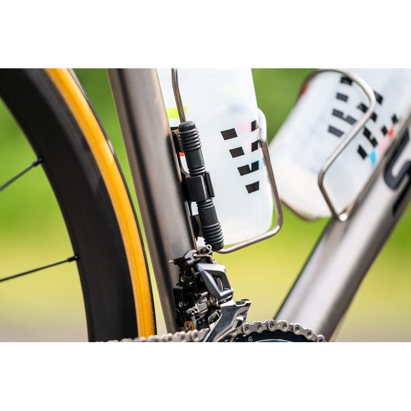 - A silicone tool holder is included. It neatly installs under the bottle cage so the Racer is easily accessible.