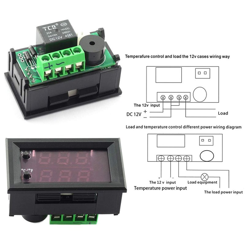 - Temperature controller monitoring instrument, show the measured temperature (red) and set temperature (blue) at the same time. Can be used for cooling/heating control. Operating Voltage: DC12V 200mA