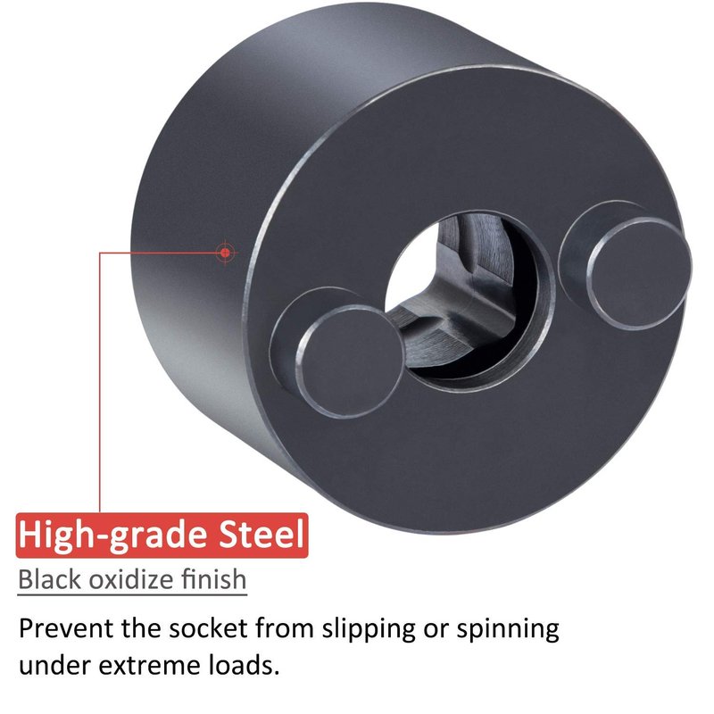• BUILT TO LAST -- This socket is manufactured from high standard steel with black oxidize finish for extended durability, also preventing the socket from slipping or spinning under extreme loads.
