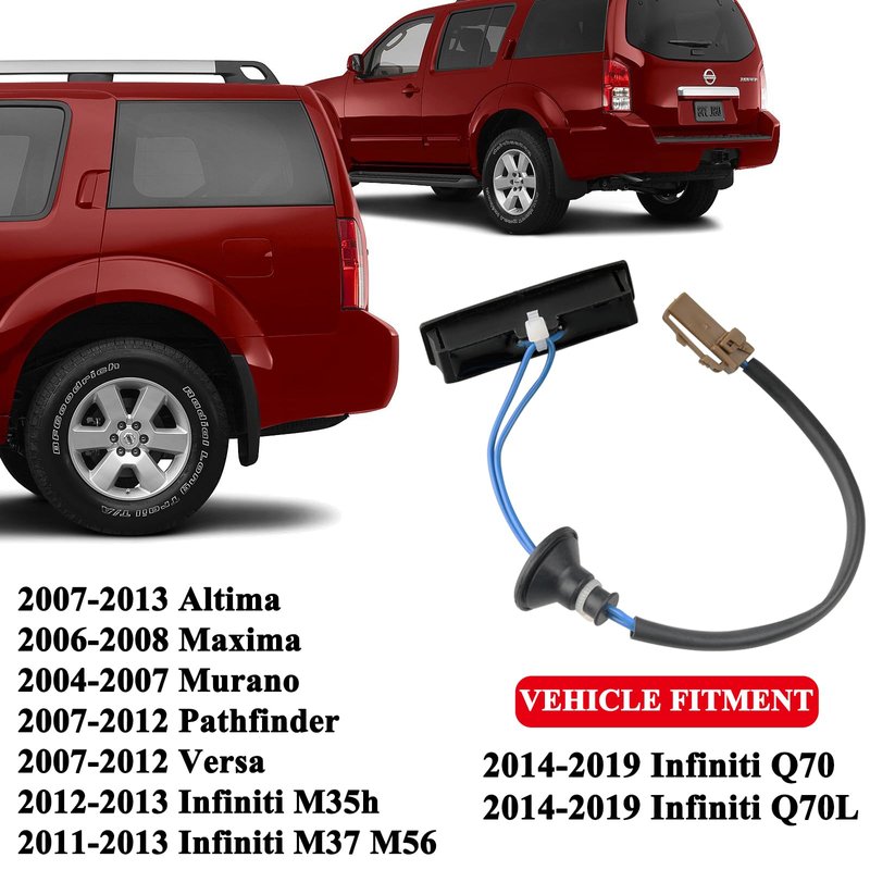 - ✅ 【Applicable Models】E-Vniko Rear Liftgate Trunk Open Release Switch is designed specifically for 2007-2013 Altima,2006-2008 Maxima,2004-2007 Murano,2007-2012 Pathfinder,2007-2012 Versa,2012-2013 Infiniti M35h,2011-2013 Infiniti M37 M56,2014-2019 Infiniti Q70,2014-2019 Infiniti Q70L