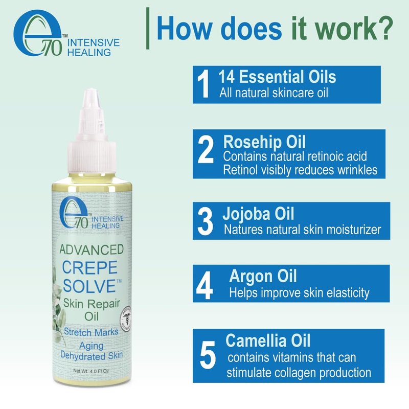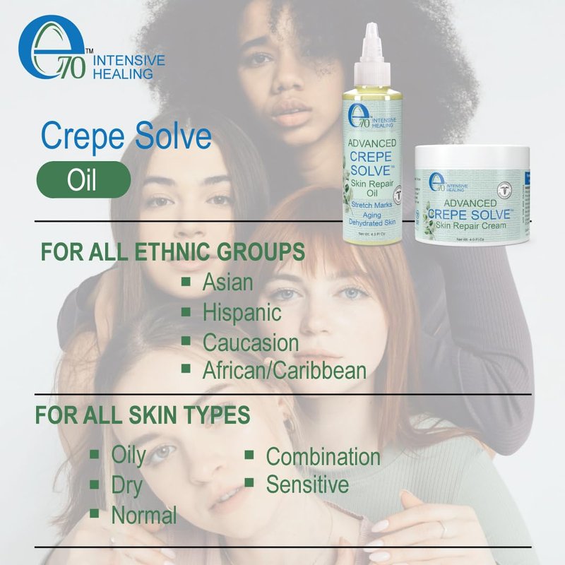E70 Advanced Crepe Solve Skin Repair Cream and Oil Set – Stretch Marks and Crepey Skin Treatment For Face and Body – Oil and Moisturizer For All Skin Types – 4oz (Pack of 2)