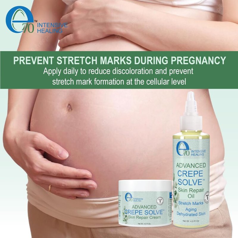 - Stretch Mark Cream and Oil Set for Pregnancy: Formulated specifically for crepey skin and stretch marks, Advanced Crepe Solve Skin Repair Cream and Oil Set is designed to deeply nourish and rejuvenate the skin. It helps in reducing the appearance of stretch marks, making it an ideal solution for pregnancy stretch mark prevention and removal. Regular use aids in improving skin texture and elasticity, leaving it smooth and hydrated.