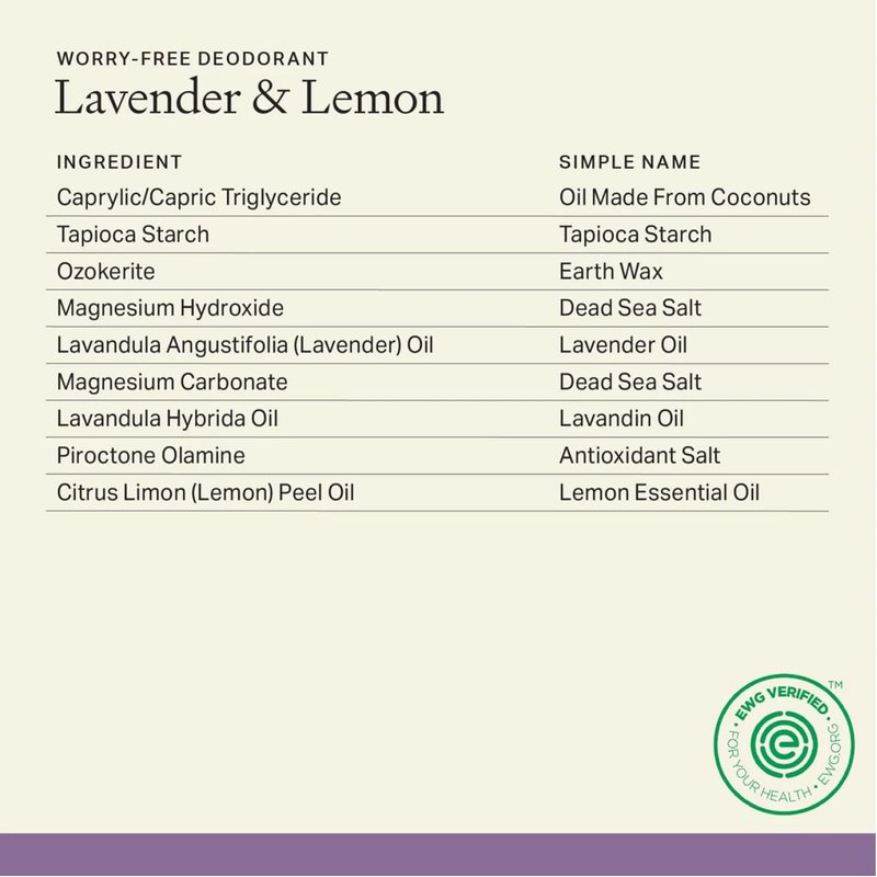 - Lavender & Lemon Deodorant: Our lavender & lemon deodorant weighs 2.5 ounces and promises to keep you fresh, safe, and smelling good for a while to come.