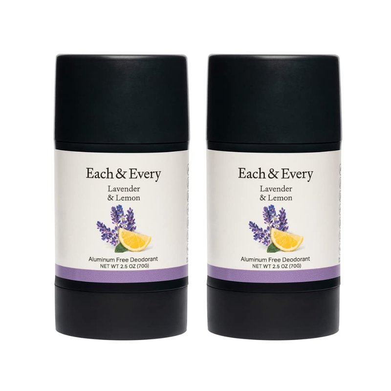 Each & Every 2-Pack Natural Aluminum-Free Deodorant for Sensitive Skin with Essential Oils, Plant-Based Packaging (Lavender & Lemon, 2.5 Ounce (Pack of 2))