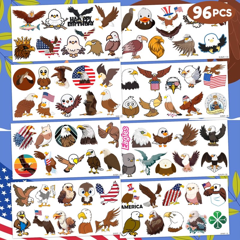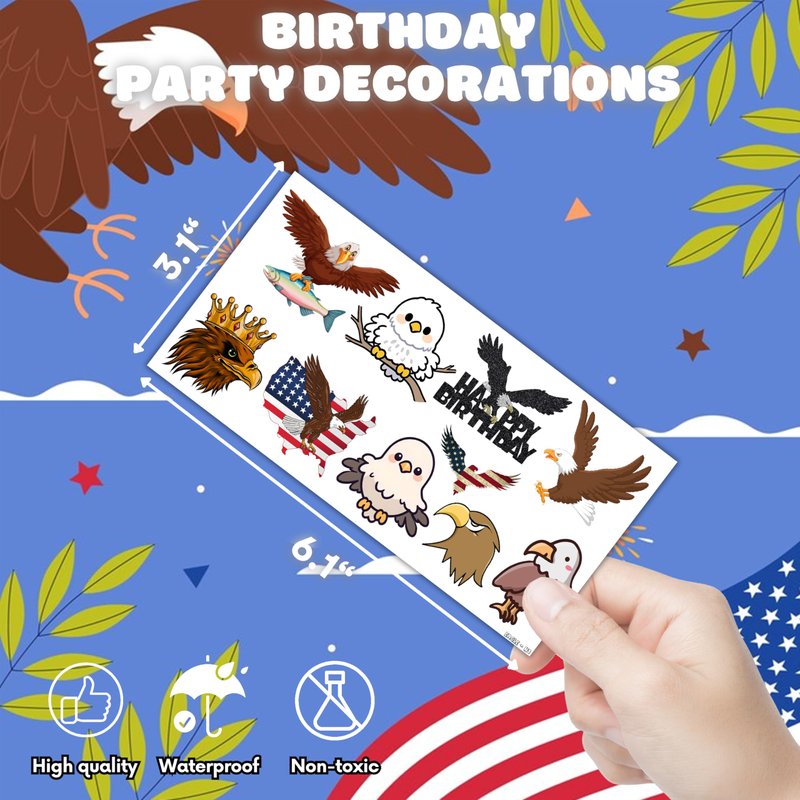 - Customer Service: Kindly contact us ASAP for any helps and all issues can be solved. This set of Bald Eagles Temporary Tattoos party favors are abundant in quantity and diverse styles that can meet your various party needs or daily needs. Thanks so much for shopping with us!