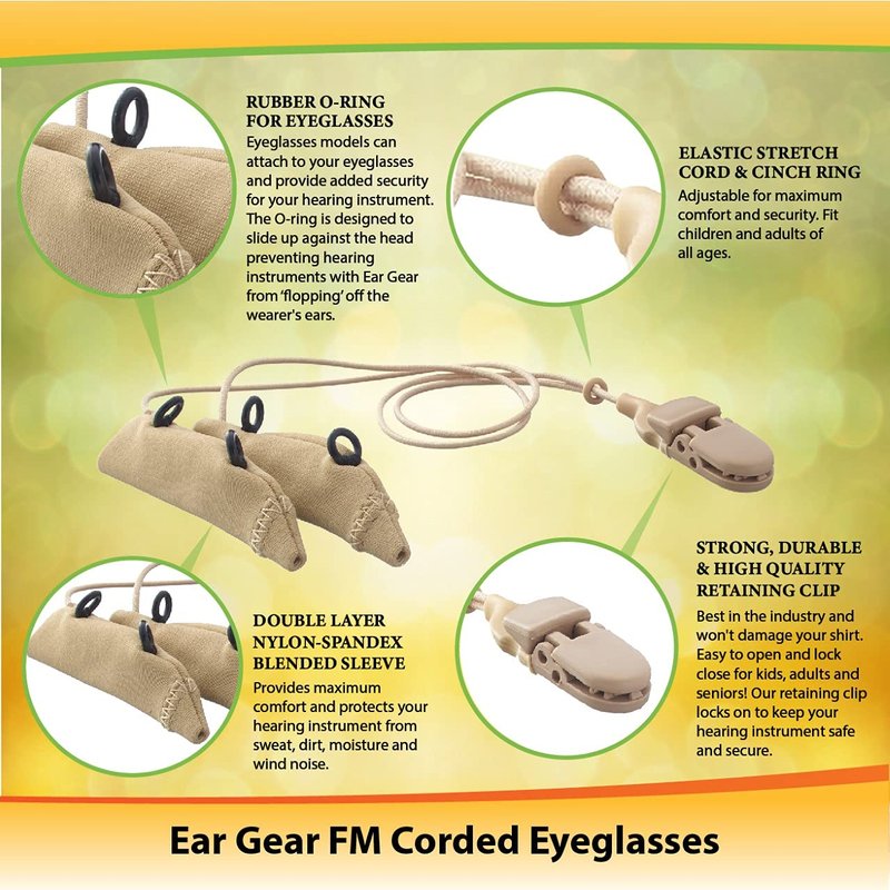 Ear Gear FM Corded Eyeglasses – Protect Hearing Aids or Hearing Amplifiers from Dirt, Sweat, Moisture, Loss, Wind – Fits Hearing Instruments 2” to 3”