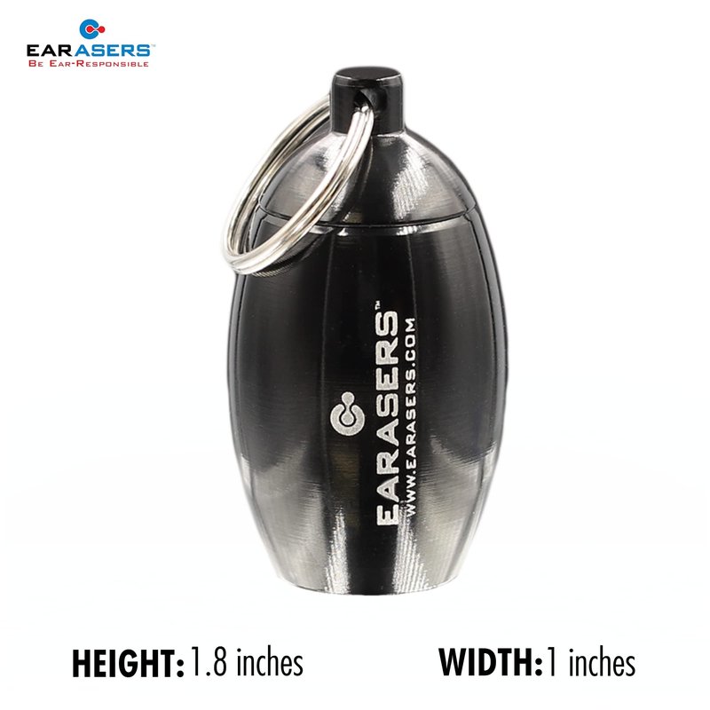 EARasers Earplugs Keychain Carrying Case - Aluminum Waterproof Ear Plugs and Pills Holder (Black)