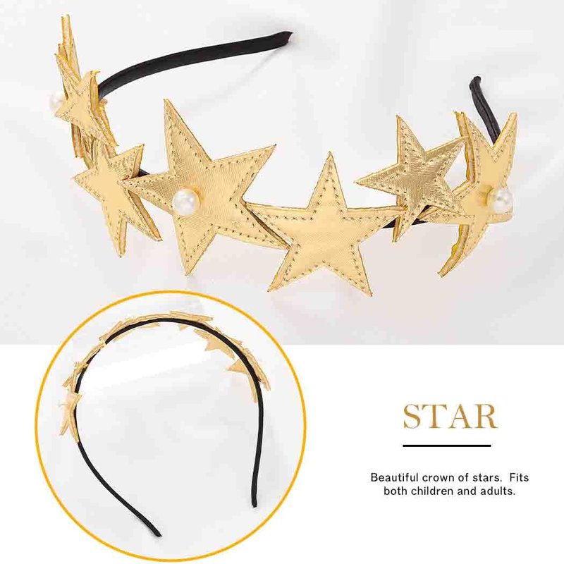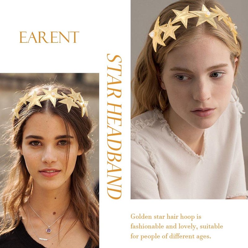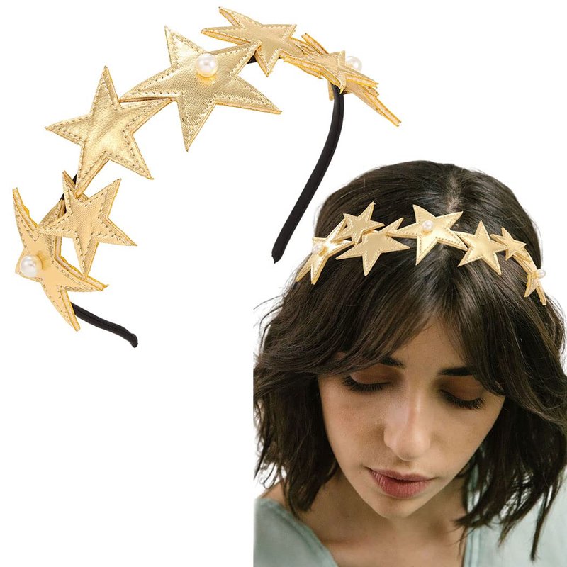- Cute party headwear designs of different size stars and white pearls, looks simple and chic. Gold star headpieces works well with many outfit, creating a variety of styles.