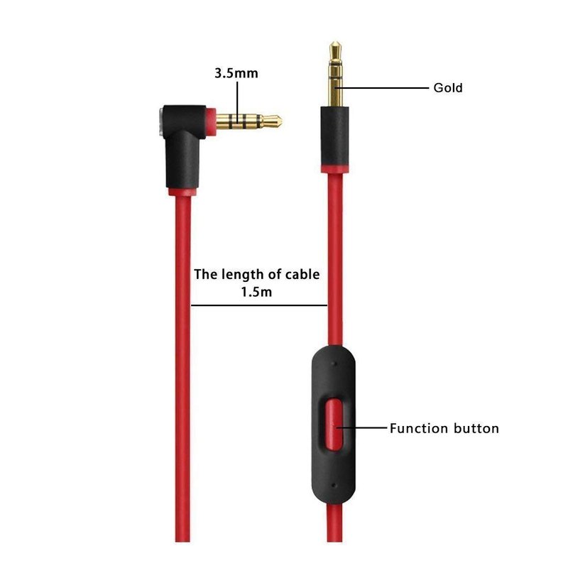 Replacement Audio Cable Cord Wire with In-line Microphone and Control For Beats by Dr Dre Headphones.