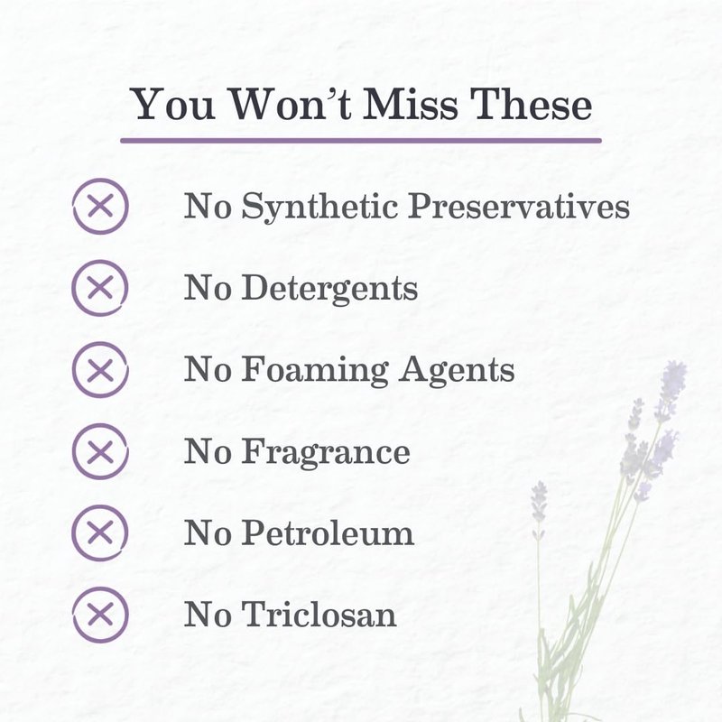 - SAFE AND EFFECTIVE: NO artificial fragrance, NO preservatives, NO Triclosan, NO phthalates, NO sulfates. What IS in it though? Well, aside from boundless amounts of love and goodness, it’s all there on the ingredient panel. Made with organic herbs and oils and no secrets, no surprises.