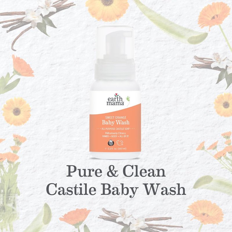 - FOR EVERYONE AND THEIR MOTHER: Sweet Orange Baby Wash comes in a convenient foamer pump and is safe for newborns and pregnant mamas, so it's a safe, moisturizing hand and body wash for the whole family. Try the other Earth Mama Castile Soaps, including Calming Lavender, Ginger Fresh, and Simply Non-Scents.