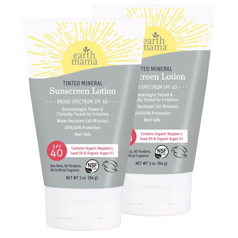 Earth Mama Tinted Mineral Sunscreen Lotion SPF 40, Contains Organic Argan and Red Raspberry Seed Oil, 3-Ounces, 2-Pack