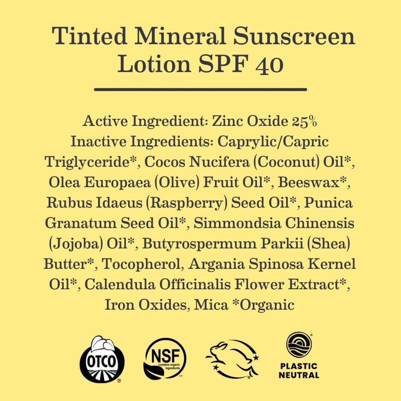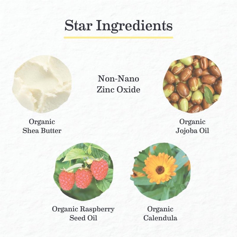 This sunscreen has all the power of non-nano mineral sunscreen, minus the white cast — with a hint of tint that seamlessly blends with most skin tones. Using the perfect balance of non-nano zinc and high-SPF organic red raspberry seed oil alongside exceptionally moisturizing organic argan oil, the sunscreeen scatters sun rays and protect from blue light without any toxic chemicals._x000D_ _x000D_ What’s not in them: Chemicals that are potentially harmful to people and the planet like dimethicone, oxybenzone or octinoxate, artificial fragrance, nano particles or parabens._x000D_ _x000D_ Note: The lotion’s tint comes from iron oxide, which has a reputation of rubbing off and showing up on light-colored fabric, but also comes out easily in the wash.