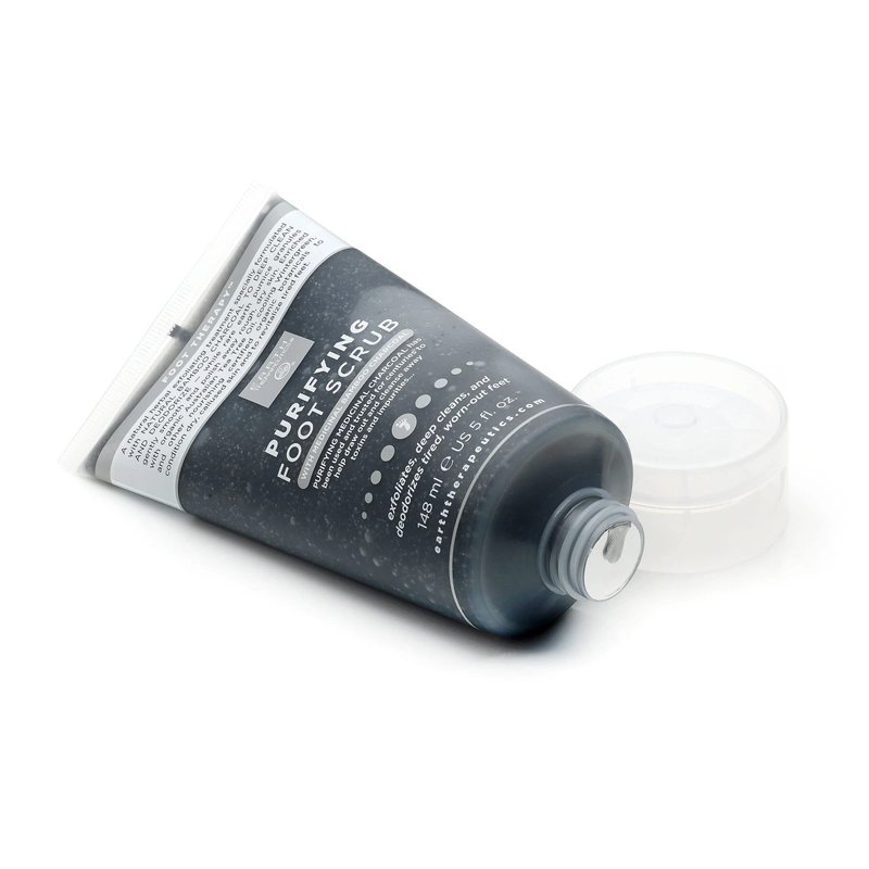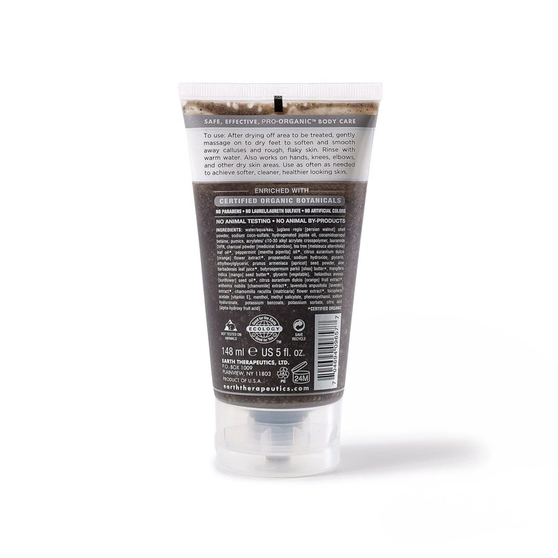 No artificial colors. No animal by-products. Foot Therapy: A natural herbal exfoliating treatment specially formulated with natural bamboo charcoal to deep clean and deodorize - while rare earth pumice granules gently smooth and polish away rough, dry skin. Enriched with organic Australian tea tree oil, cooling wintergreen, and other nourishing certified organic botanicals to condition dry, callused skin and to revitalize tired feet. Purifying medicinal charcoal has been used and trusted for centuries to help draw out and cleanse away toxins and impurities. Exfoliates, deep cleans, and deodorizes tired, worn-out feet. Safe + effective foot care. Enriched with certified organic botanicals. No parabens. No Lauryl/Laureth sulfate. Ecology: Good for the earth. Good for you. earththerapeutics.com. No animal testing. Not tested on animals. Save recycle. Product of USA.
