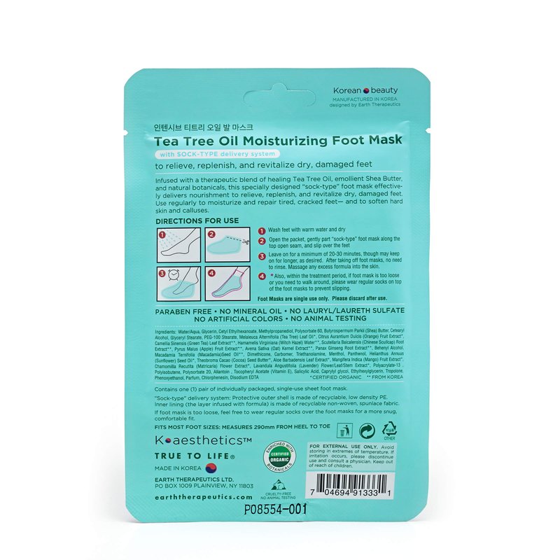 - "Sock-type" Organic Tea Tree Oil Moisturizing Foot Mask effectively delivers nourishment to relieve, replenish, and revitalize dry, damaged feet