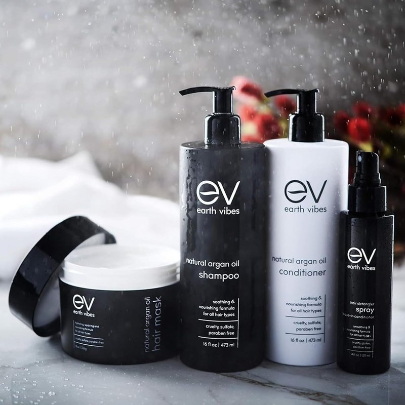 Earth Vibes Argan Oil Shampoo - Conditioner - Leave In Detangler - Hair Mask