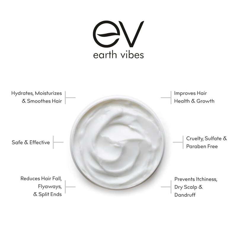 Earth Vibes Hydrating Argan Oil Hair Mask Conditioner - Deep Conditioning & Moisturizing - Hair Treatment For Dry Damaged Hair - Sulfate Free - Organic Jojoba Oil, Coconut Oil (8 Oz/226g)