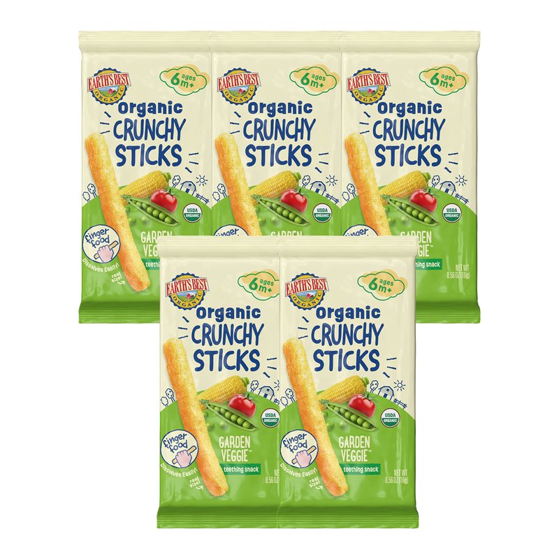 - GARDEN VEGGIE CRUNCHY STICKS: Includes five .56 oz pack of Earth's Best Organic Crunchy Sticks