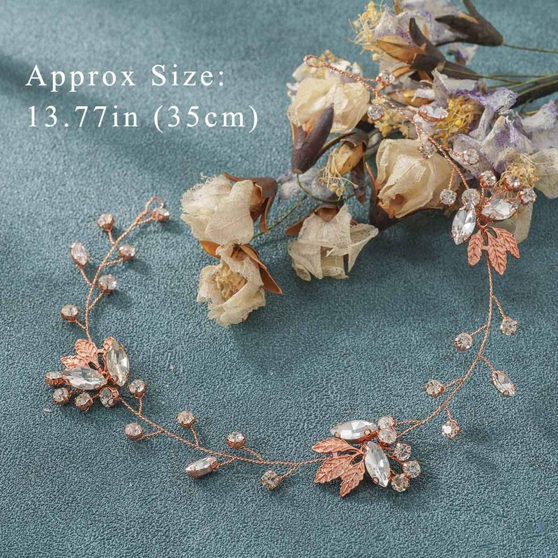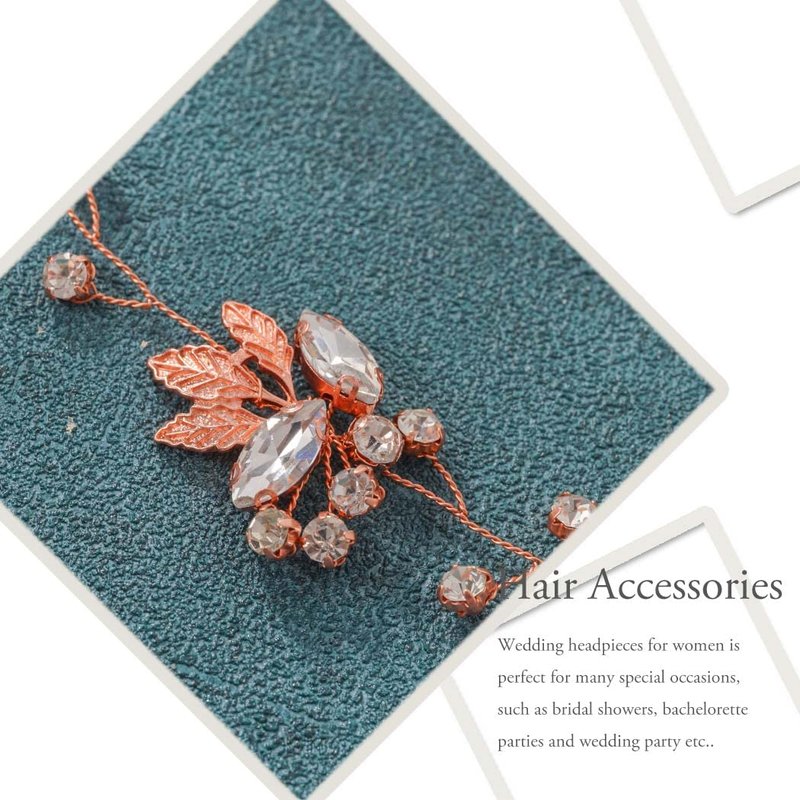 EASEDAILY Rhinestone Bride Wedding Hair Vine Rose Gold Leaf Crystal Bridal Headpiece Headband Hair Accessories for Women and Girls