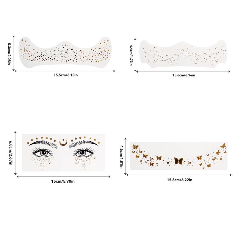 - ✨【For Many Occasions】With a gentle sticker and an easy tear, brighten up your makeup within a moment! It is suitable for various events like music festivals, singer-dancer concerts, clubs, weddings, birthday parties, beach days, pool parties, cosplay, Parade, Christmas, Halloween, New Year's, and so on. Special and easy to match with all kinds of styles with convenient usage, just enjoy this glowing face makeup!