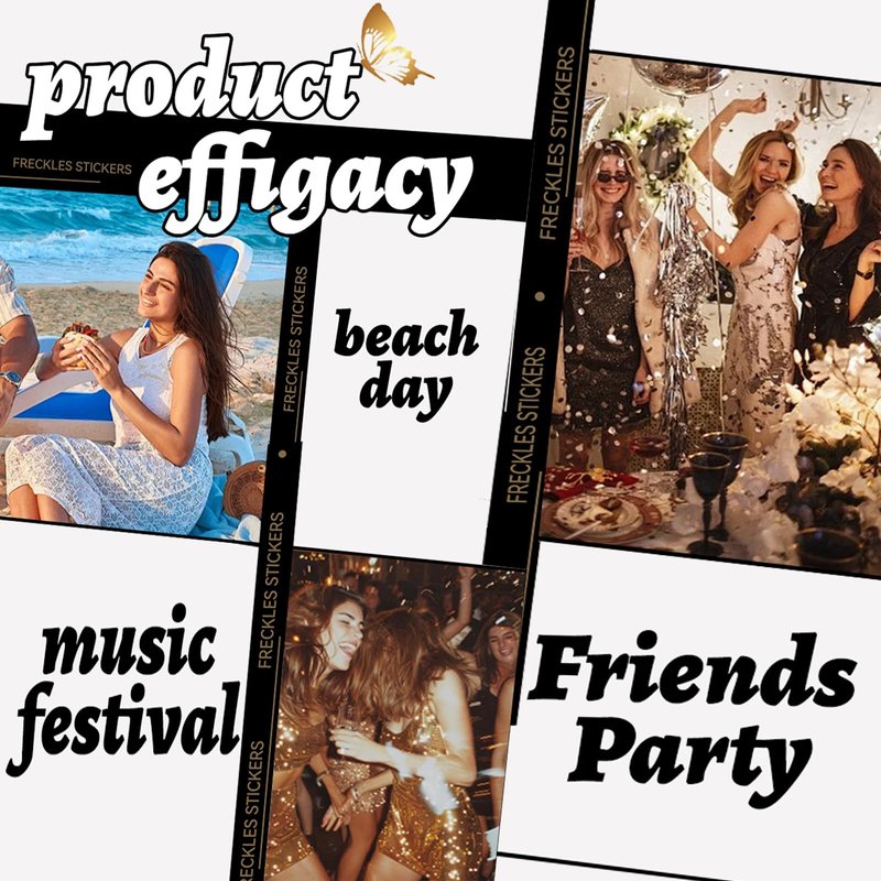 - ✨【Easy to use】This temporary freckle sticker has with thoughtful cutting design. The shape of the sticker is designed according to the shape of our cheek, and the cutting design in the middle makes it better fit the contour of our face. Simply put it on the cheek area you can get perfect freckle makeup, no need to design the place by yourself. Gently rub with makeup remover and soap it can be clean completely, never worry about residual.