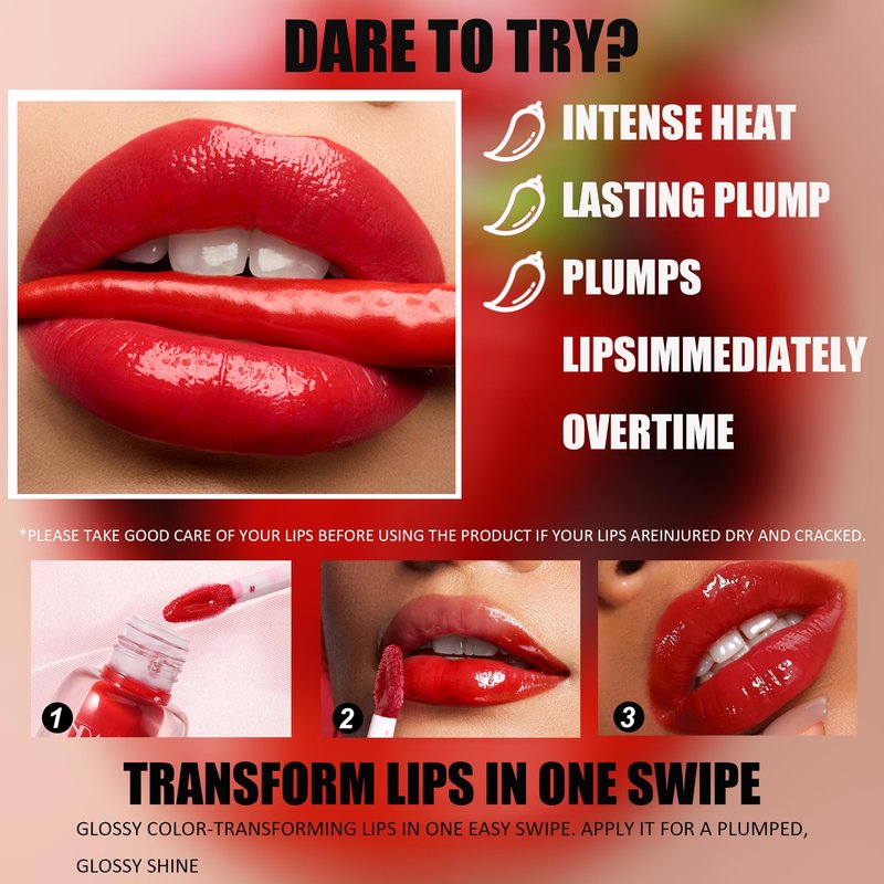 - ✅【MILD SPICINESS】 This lip plumping gloss contains peppermint and chili extracts, which will have a slightly spicy feeling on the lips. You may be surprised when you first use it, but you will soon feel a pleasant coolness. It reduces the look of lip lines and wrinkles while increasing lip volume. Perfect for thin and dry lips.