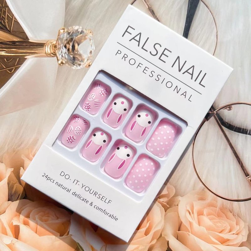 24Pcs Square Head False Nails Nude Pink Bunny Eggs Easter Designs Artificial Fake Nails With Glue Full Cover Nail Tips Press On Nails DIY Manicure Tools Feature: 1. 100% brand new. 2. Wearable nail art, and fashionable designs, make you more charming. 3. Suitable for home, office, party use, appointment, shopping show. 4. Easy to wear and remove. Quick and convenient everywhere and every time. 5. 24pcs/set with vary size ,can fit most nails. 6. Liquid glue is not included, will have a double-side sticker. Specifications: Type: Fake Nails Application: Finger Material: Acrylic ABS Package Includes: 24pcs/Box False Nail Tips + 24pcs Press glue + 1pcs Nail file + 1pcs Wood Stick How to apply 1. Clean and buff natural nails gently. 2. Apply nail glue or glue sticker to the plastic tip. 3. Apply a plastic tip to the natural nail. 4. Press the tip and hold down for 20 sec. How to remove 1. Use a small wooden stick to cut cotton and gently lift the nail from the edge. 2. Clean the residual gum on the nail piece and nail surface. 3. After removing the nail, the nail piece can be reused. Do they come with glue? Yes, they come with glue. How long do they last? It depends on how you used your nails. Normally they can last about 5-7 days. Note: 1. Please allow 1-3cm differences due to manual measurement. 2. Due to the different displays and different lights, the picture may not reflect the actual color of the item. Thanks for your understanding.