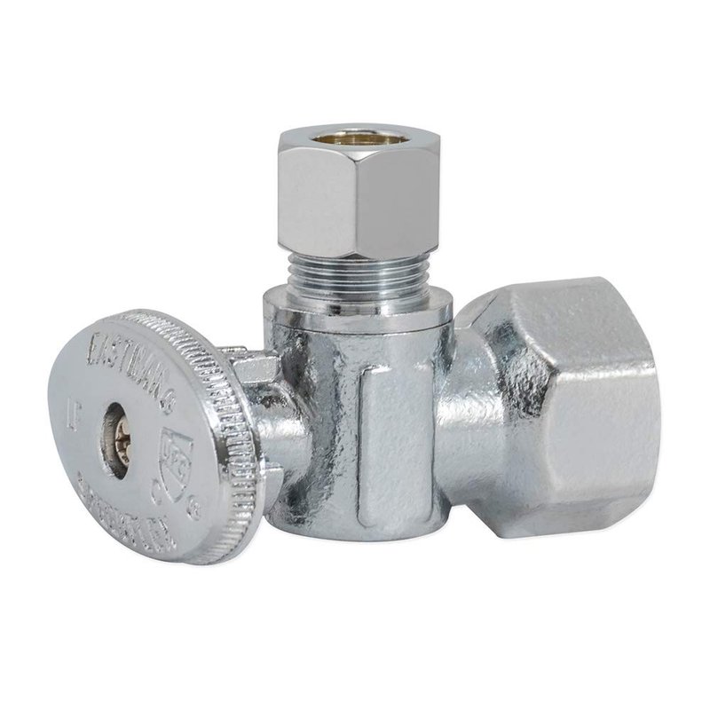 Eastman 1/2 inch FIP x 3/8 inch OD Compression Quarter Turn Angle Stop Valve, Brass Plumbing Fitting, Chrome, 10733LF