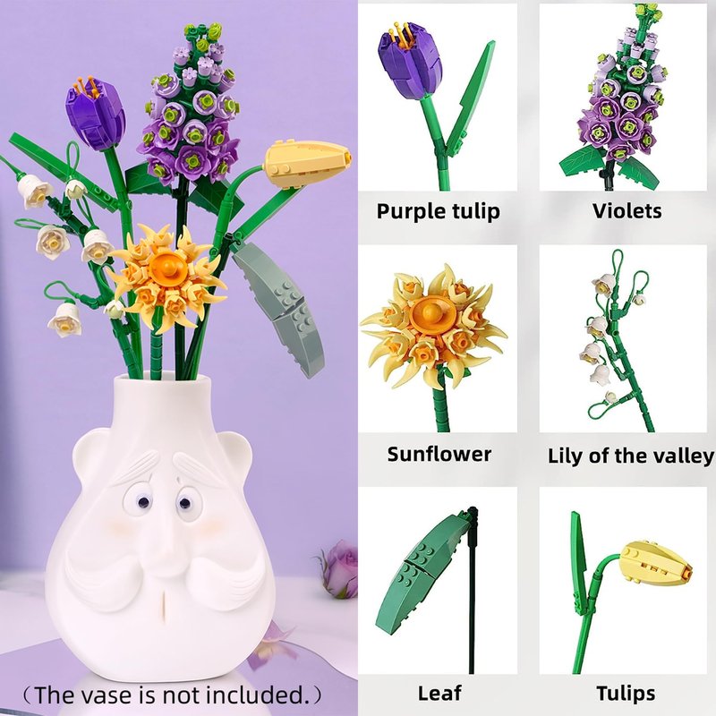 - ♚ Exquisite decoration: This bouquet is the perfect complement to your display, desk, or office. It comes with building blocks that you can assemble into a beautiful and timeless bouquet. Bring the beauty of flowers into your life without worrying about them withering. This gift is designed specifically for those who enjoy expressing their creativity and decorating their space with unique and elegant items. Fill your life with beauty with this unique bouquet of building blocks as a gift.