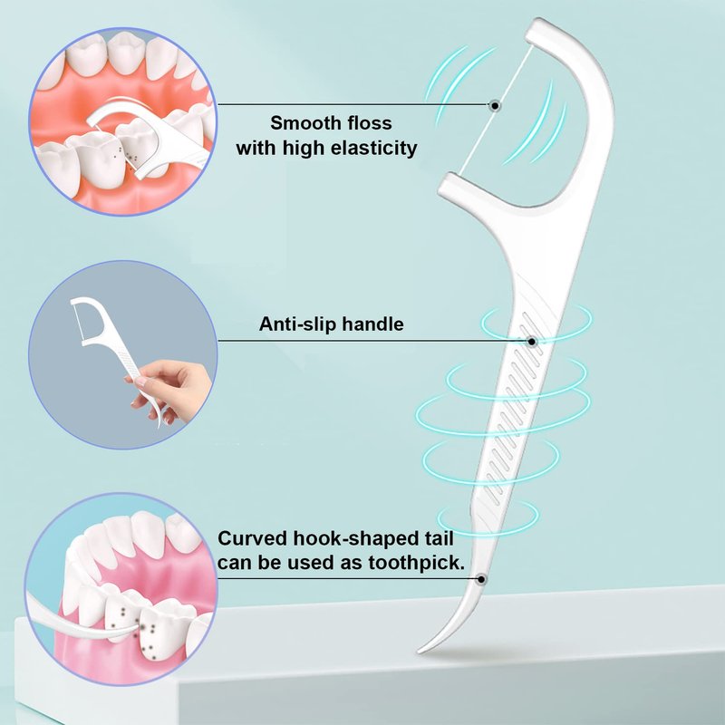 - 【PROFESSIONAL MATERIAL】The dental floss stick has high strength, not easy to break, silky and comfortable dental floss, easy to slide between teeth, the end of the dental floss can be used as a toothpick, more effective for cleaning teeth and gum care.