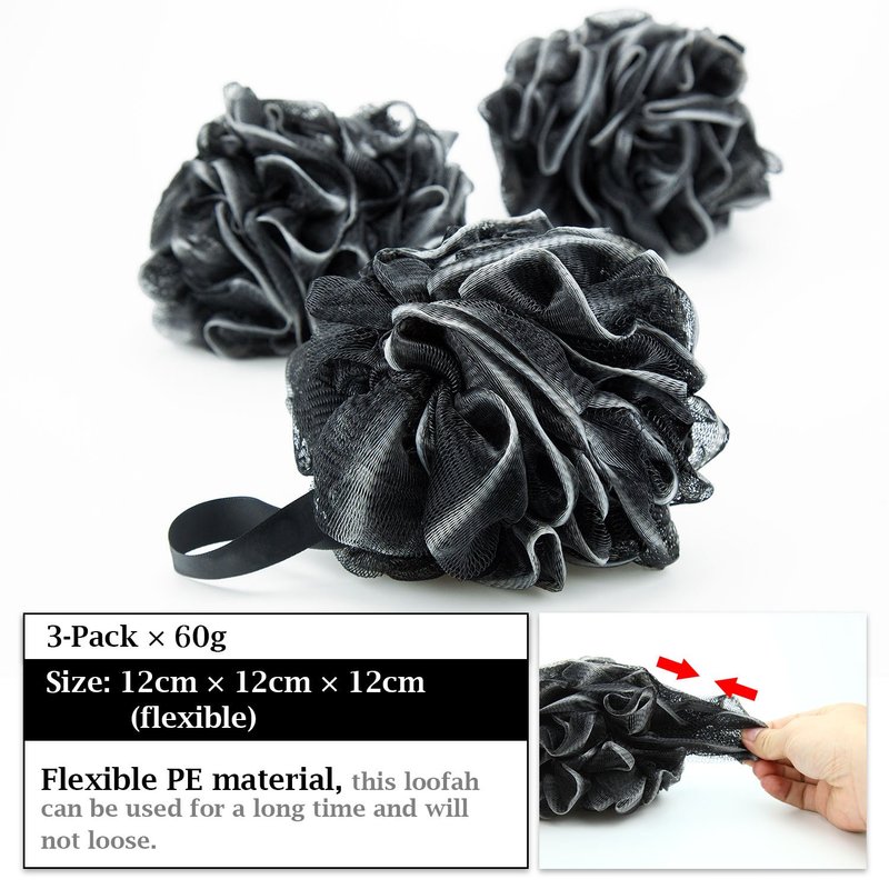Easymoo Bath Loofahs Sponge Shower Pouf Body Scrubber Mesh Pouf Bath Sponge 3 Pack