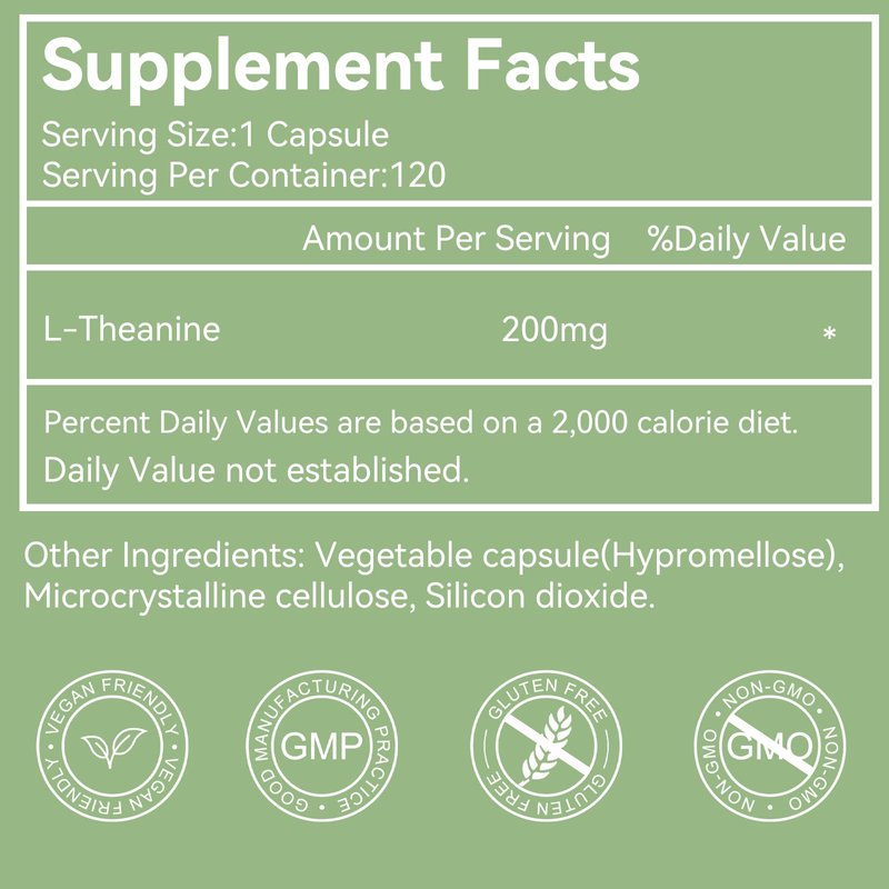 - L Theanine Supplement - 200mg L-theanine provides calming & relaxing effect on the body, supports good relaxation, and the ability to deal with stress.