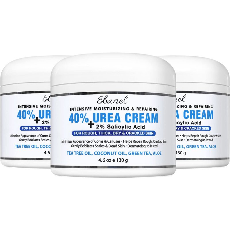 Ebanel Urea Cream 40% plus Salicylic Acid 2%, Foot Cream for Dry Cracked Heels Feet Knees Elbows Hands, Foot Dead Skin Cuticle Callus Remover Toenail Softener, Skin Barrier Repair Cream, 3-Pack