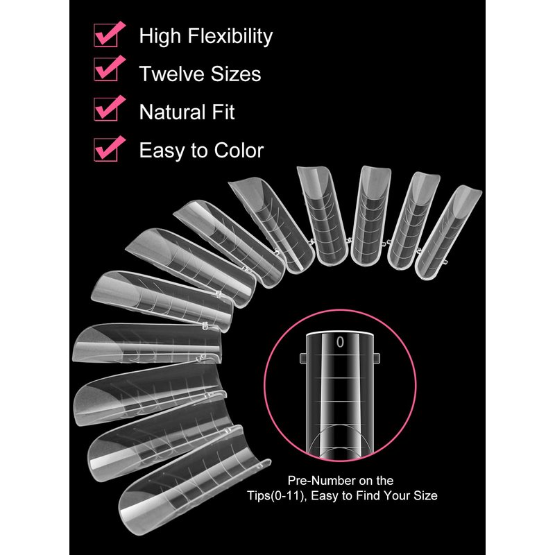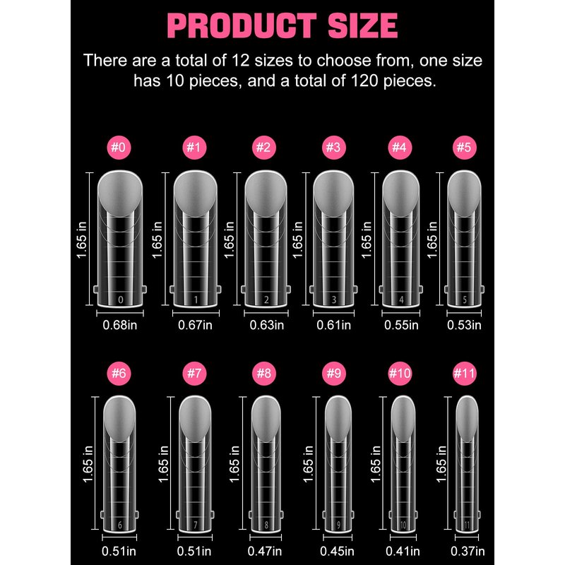 - 【Nail Form Mold with 12 Sizes】120pcs clear nail forms offers 12 different nail sizes , and each size of long nail tips is separated by a small grid, a total of 12 grids, so they're easy and convenient to choose the suitable size to meet your nail's need.