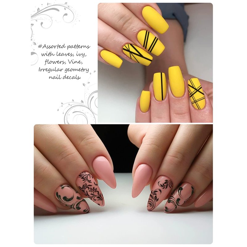 - Various Patterns: Assorted patterns with leaves, ivy, flowers, Vine, Irregular geometry nail decals. Help to create a charming, elegant and romantic French nail styles.