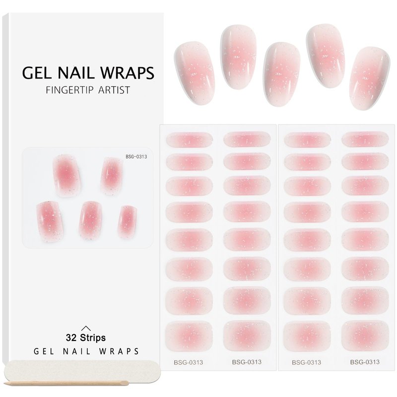 EBANKU 32PCS Cured Gel Nail Strips Real Nail Polish Strips Wraps Long-Lasting Waterproof Gel Nail Polish Wraps Full Wrap Gel Nail Art Stickers UV/LED Lamp Required (Diamond Blush)