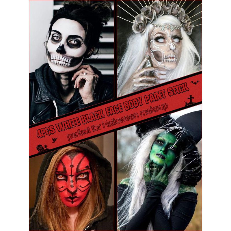 EBANKU 4Colors Face Body Paint Stick Oil, White Eye Black Sticks for Sports, Cream Skeleton Joker Mime Foundation Makeup, Face Painting Kit for Christmas SFX Cosplay Costume Party