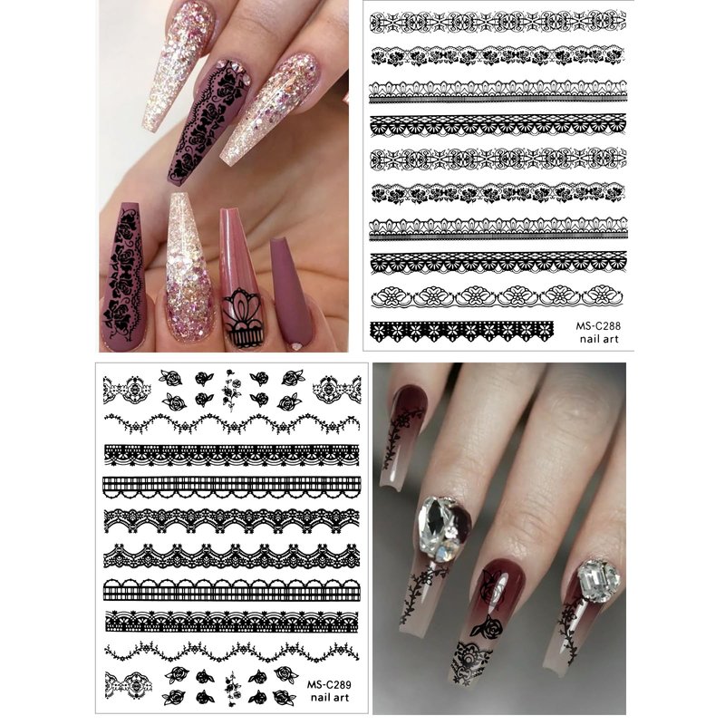 - The Great Fun of Diy: Black flower self-adhesive lace nail decals for nail art, and great to create your unique awesome nail art designs. It is fun to DIY nail art with your family or friends when family gathering and party, enjoy your own shining look nails and the good time.