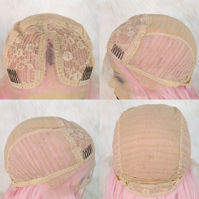 - ♥ ADJUSTABLE & BREATHABLE ♥: Synthetic Pink lace front wig is designed with 2 adjustable straps hooks and 3 combs. Soft breathable material structure,adjust the cap size from small to medium to large. No worry about the size.
