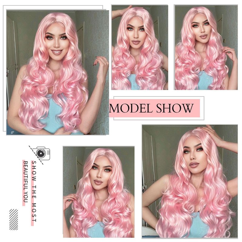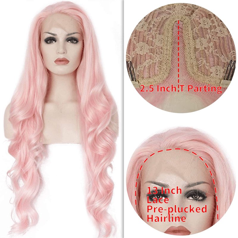 - ♥ SUITABLE OCCASION ♥: Pink Middle Part Lace Front Wigs for women not only can be used for daily use but also Halloween costume party,cosplay,birthday,wedding.