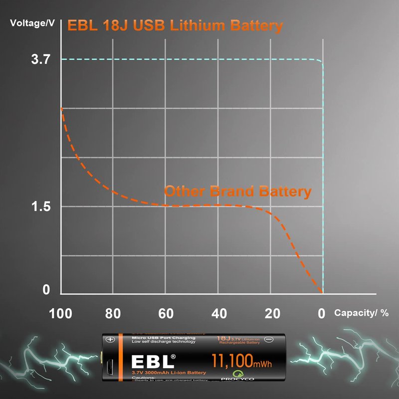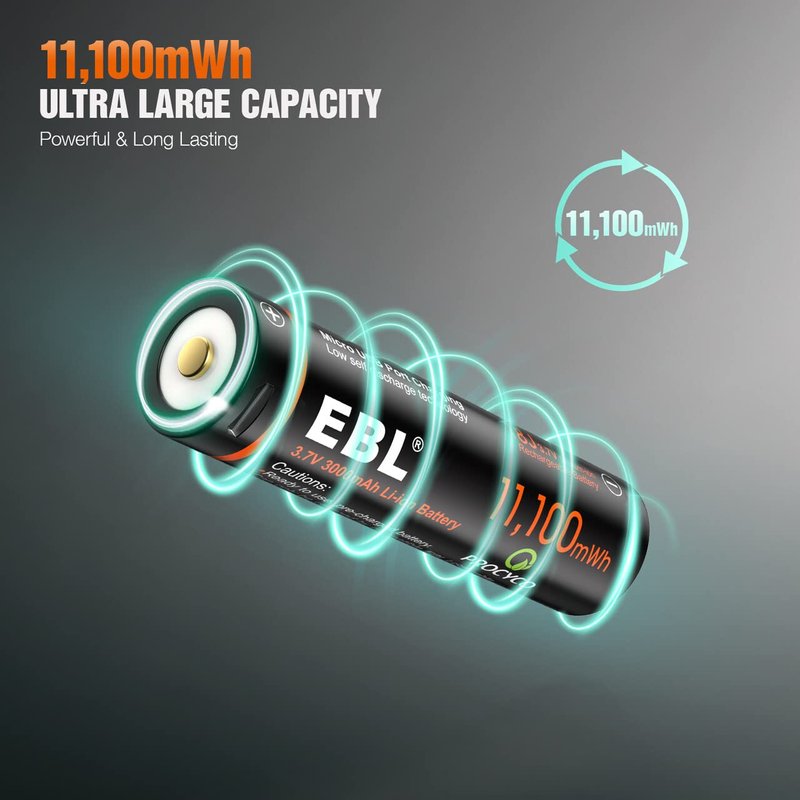 EBL 3.7V 11,100mWh USB Rechargeable Lithium Battery, Steady Voltage for high current applications(NOT AA BATTERY)