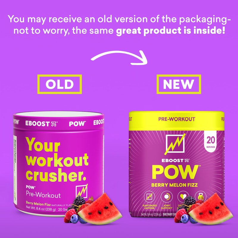 - Supercharge Your Performance: POW is a natural pre workout that enhances your mind and muscles to help you maximize your workouts. Work out hard and recover smoothly with ingredients in doses that deliver. Flavor: Berry Melon. 20 Servings