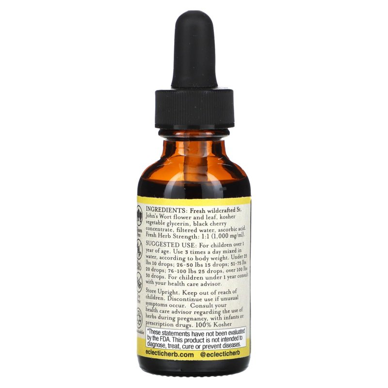 Eclectic Institute Kids Herbs - St. John's Wort, Black Cherry Flavor | Herbal Health Supplement, Promotes a Positive Mood | 1 fl oz (30 ml)