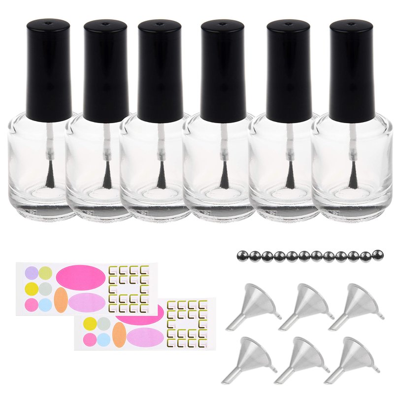 - NAIL POLISH BOTTLES ⭆ There are 6 transparent bottles in this pack that will allow you to mix interesting colors for your fabulous nail polish creations. These holders are recommended for different nail polish colors, brands and mixtures.